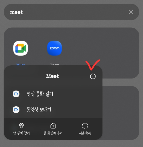 4. meet아이콘을 살며시 길-게 눌러 주세요.