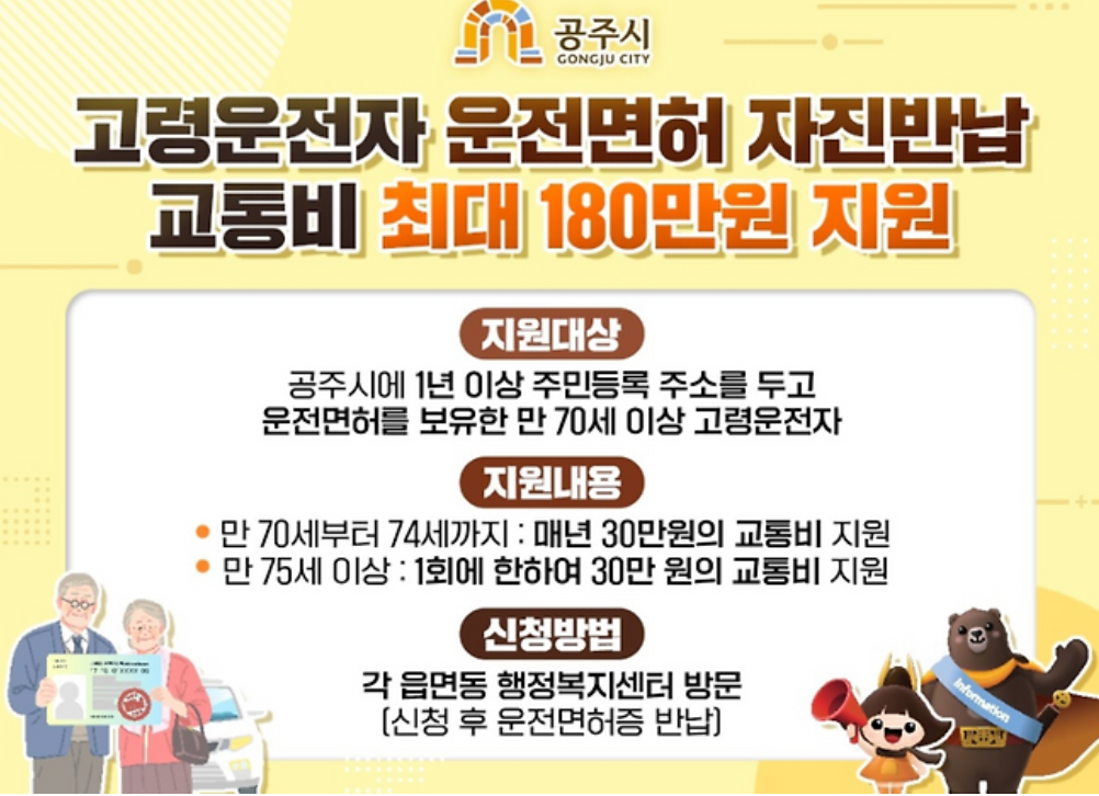 ※ 2026년 올해 들어서 운전면허 반납 지원금 사업이 확대되었습니다.