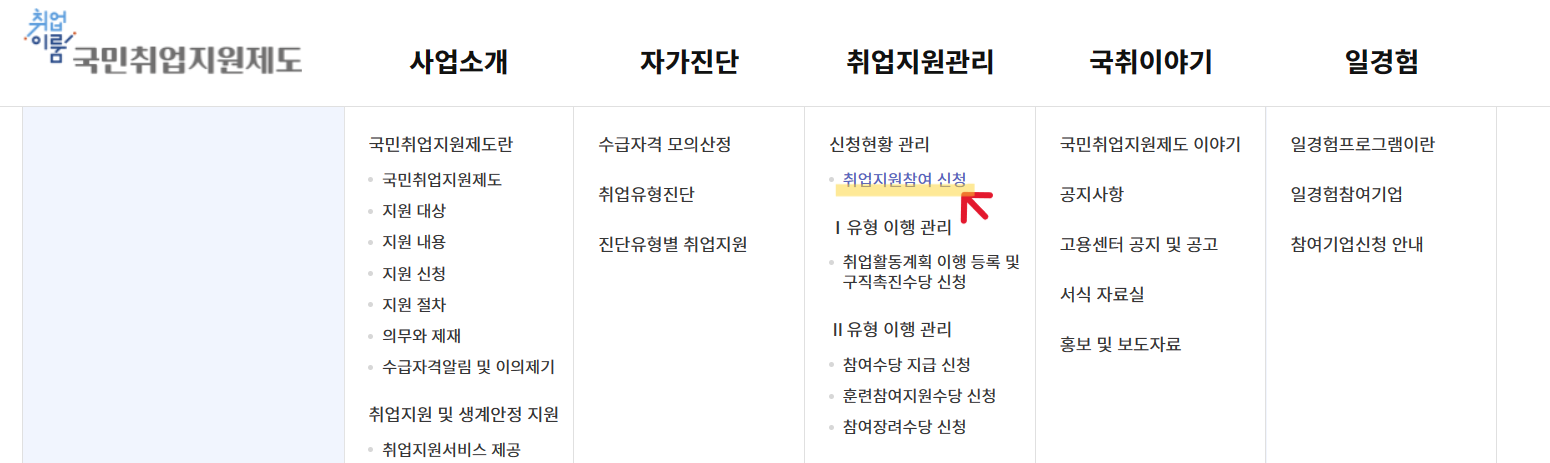 위의 사이트 방문 후 , 취업지원관리 → 취업지원참여 신청을 선택해 신청하실 수 있습니다.