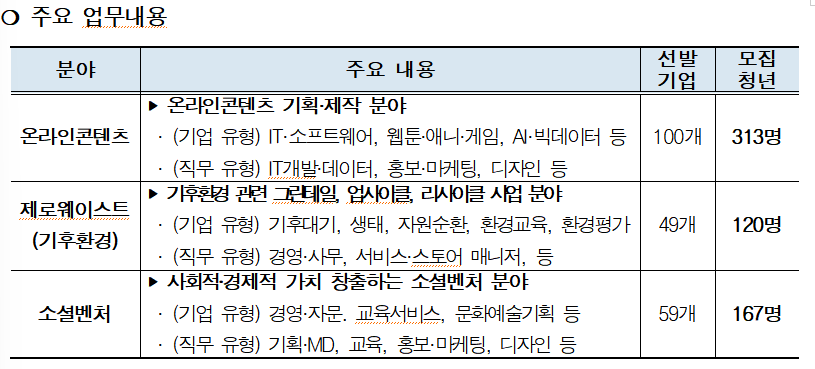 -온라인 콘텐츠 분야: 100개 기업 313명 모집