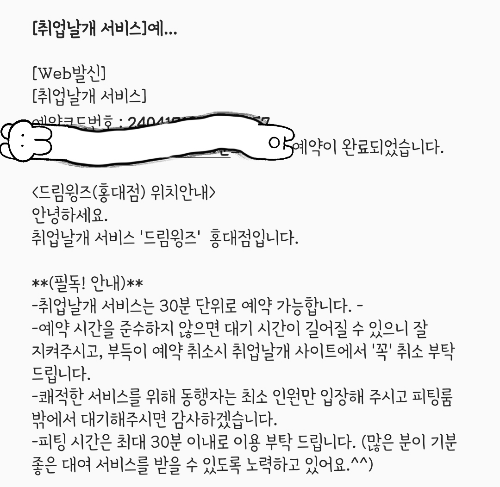 예약이 완료되면, 아래와 같이 문자가 옵니다 :)