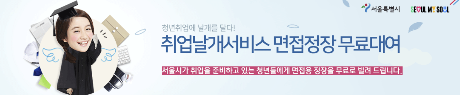 서울시에서 취업을 준비하는 청년에게 무료로 면접 정장을 빌려주는 서비스를 진행하고 있습니다. 면접복을 구매하는 것에 부담을 느꼈을 취업 준비생들을 위해서 서울시에서 제공하는 고마운 서비스인데요. 간단한 절차로 무료로 정장을 대여할 수 있으니, 많은 분들이 이용하셨으면 좋겠습니다 :)