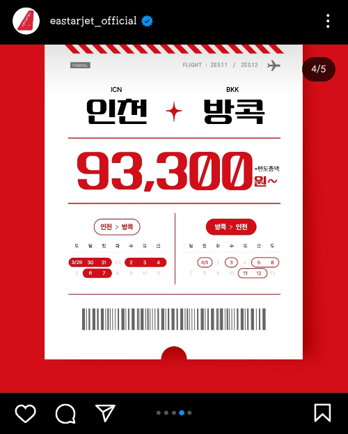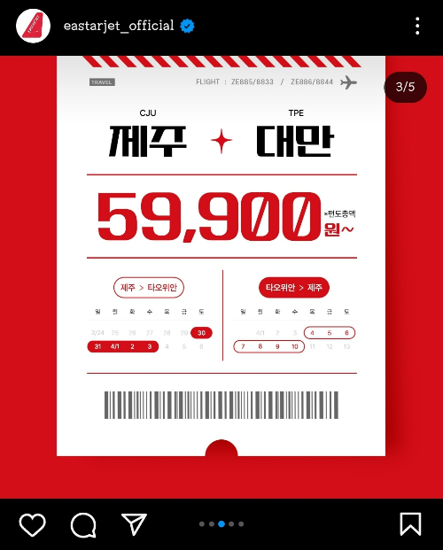 ◆이스타항공의 인스타그램을 팔로우 한 사람들에게만 제공됩니다.