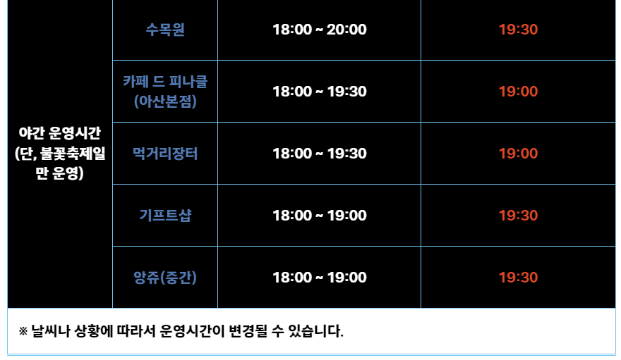 ●축제 장소: 충남 아산시 영인면 월선길 20-42 / 피나클랜드 수목원 일대