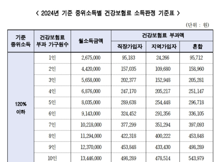 2024년 기준 중위 소득 120%와 150% 기준입니다.