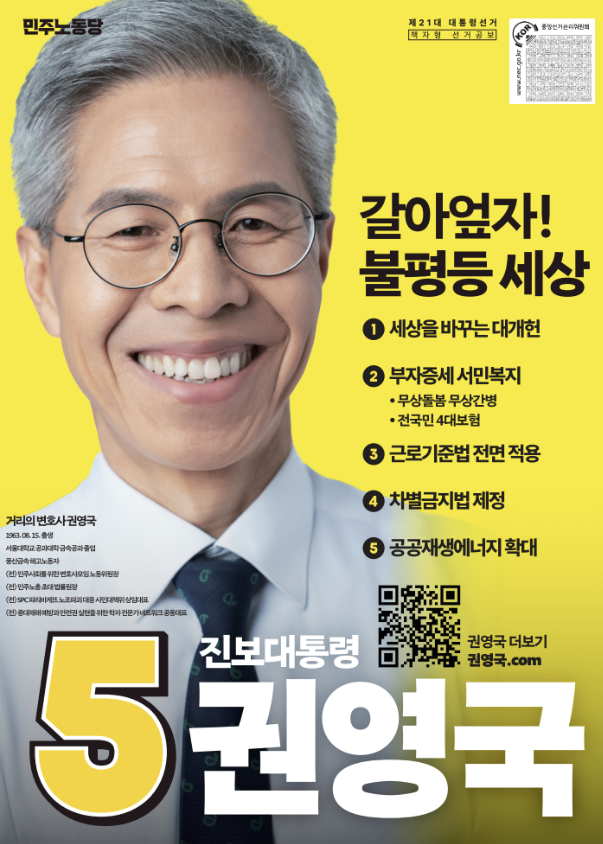 기호 5번 권영국: 노동 중심의 정의로운 대한민국